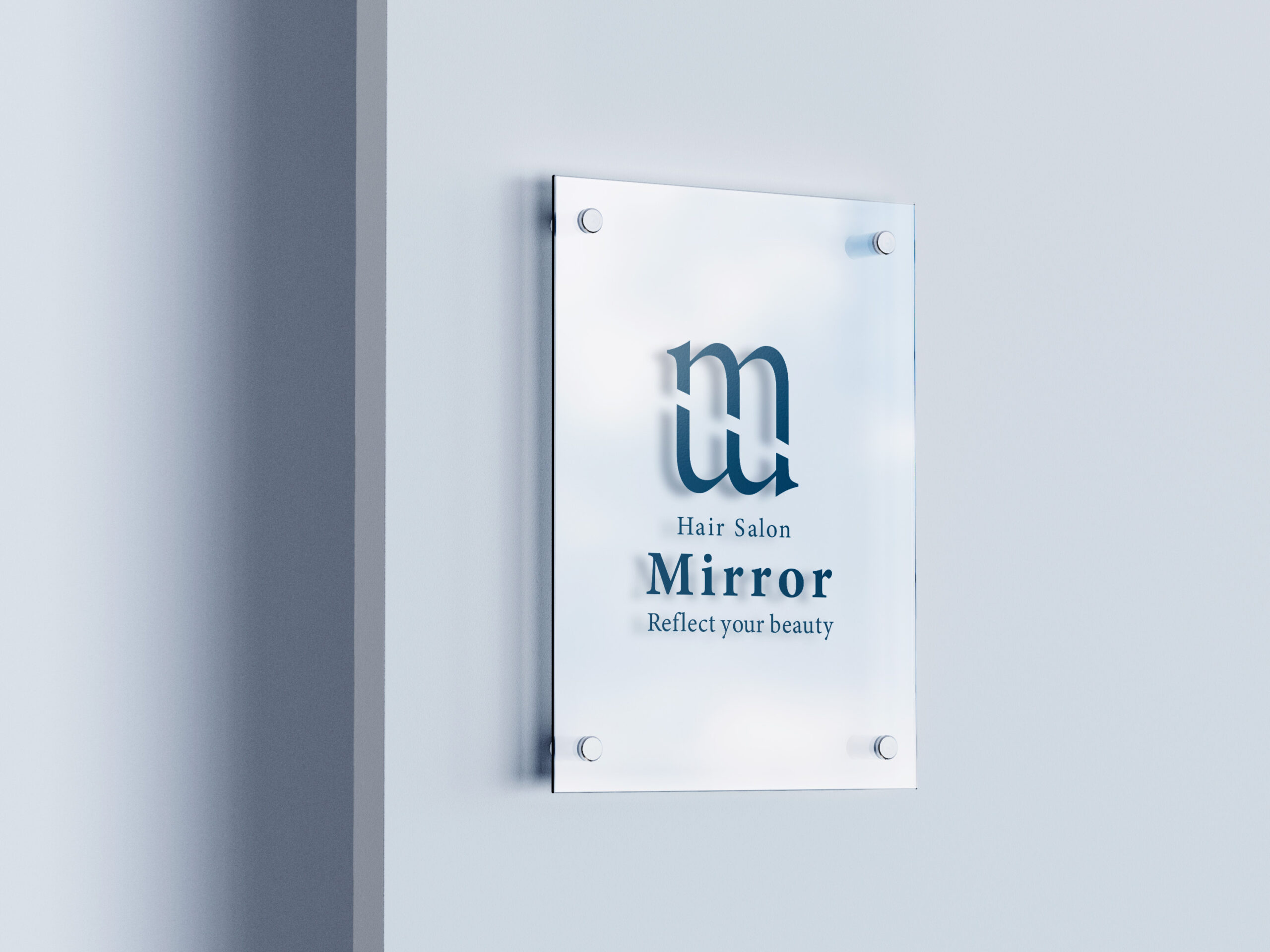 「m」を上下に構成し、二面鏡を連想させるデザインに。ヘアスタイルが仕上がり、後ろ姿を鏡で確認する“美しさを映し出す”瞬間を表現しました。